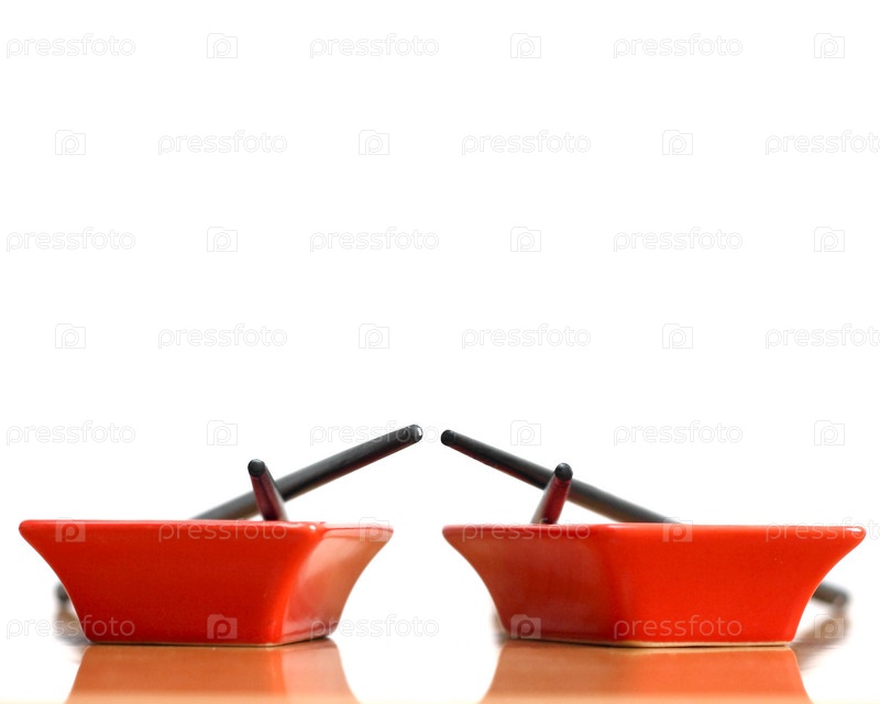 Две красные тарелки с палочками