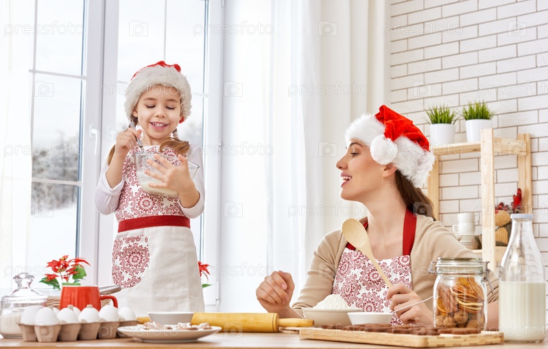 Мать и дочь готовят Рождественское печенье