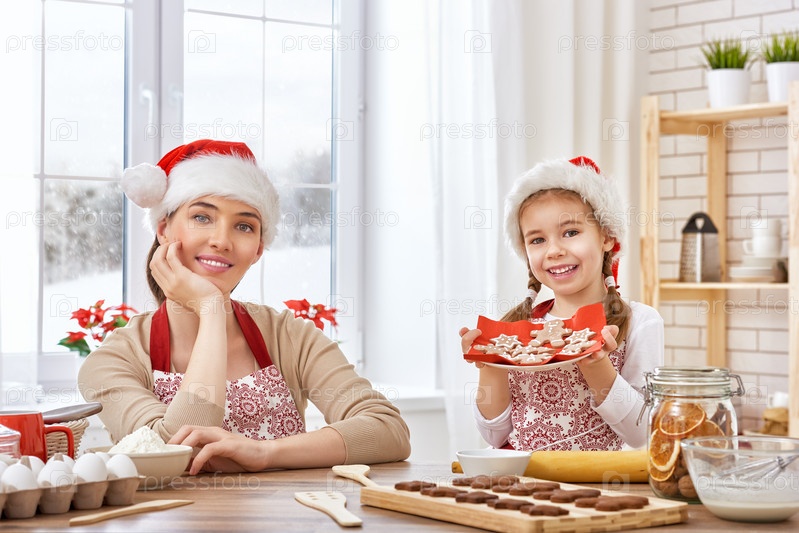 Мать и дочь готовят Рождественское печенье