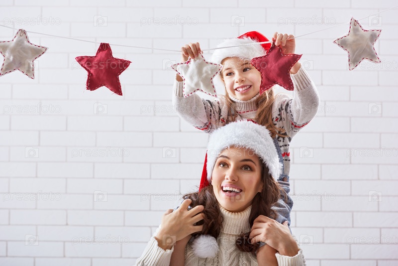 Мать и дочь вешают гирлянду