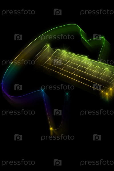 Многоцветный силуэт гитары на черном фоне