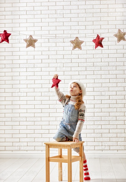 Девочка вешает звездочки