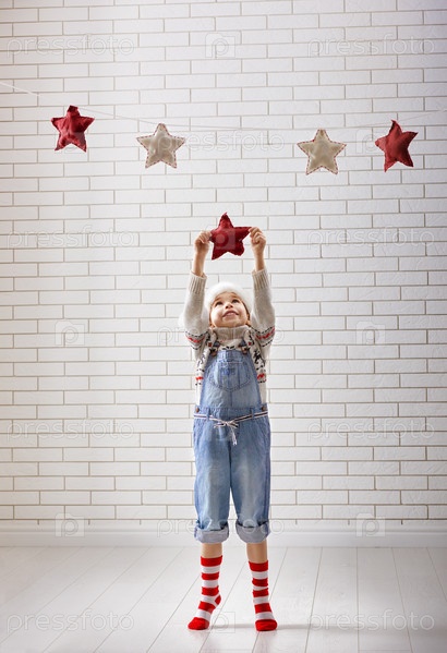 Девочка вешает звездочки