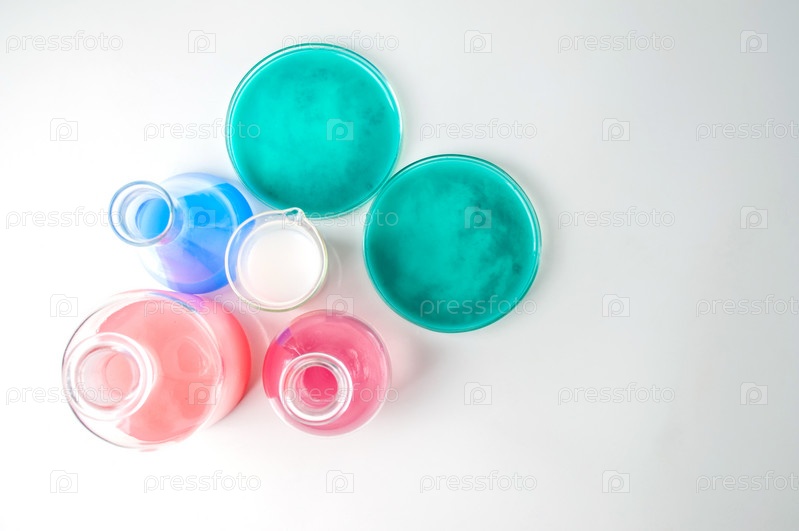 Лабораторная посуда с жидкостями
