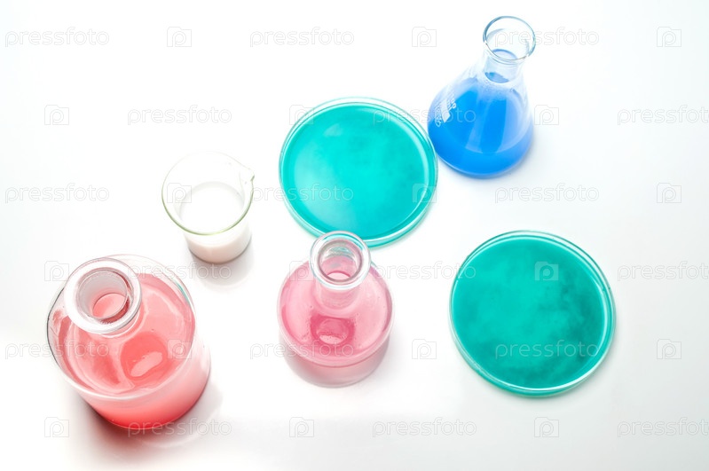 Лабораторная посуда с жидкостями