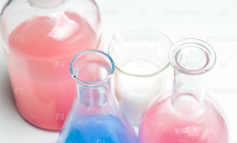 Лабораторная посуда с жидкостями
