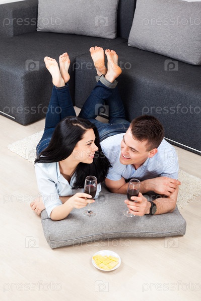 Молодая пара с бокалами вина