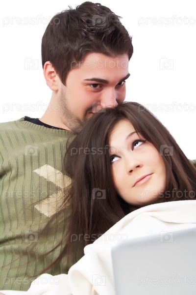 Влюбленные смотрят фильм на ноутбуке на диване