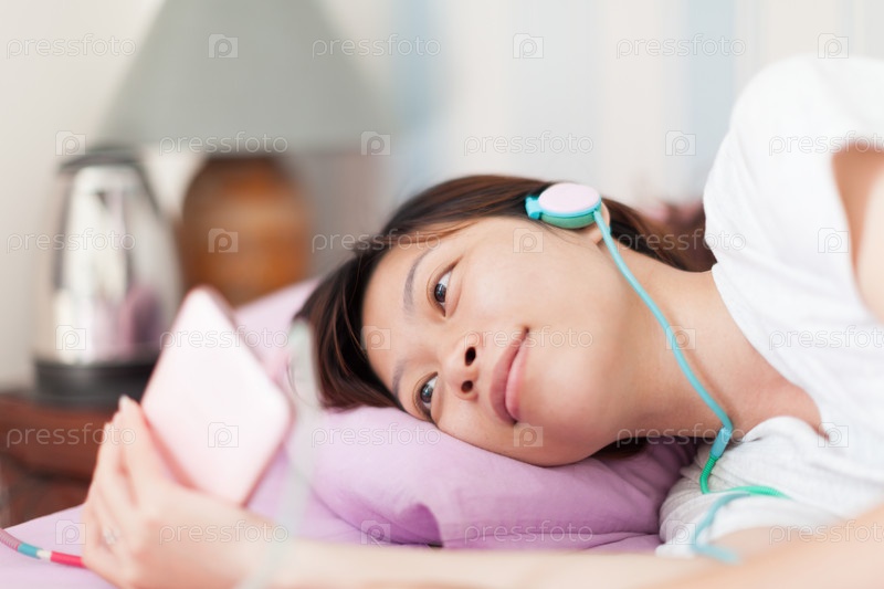 Девушка слушает музыку в наушниках