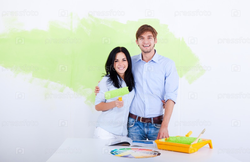 Счастливая пара делает ремонт