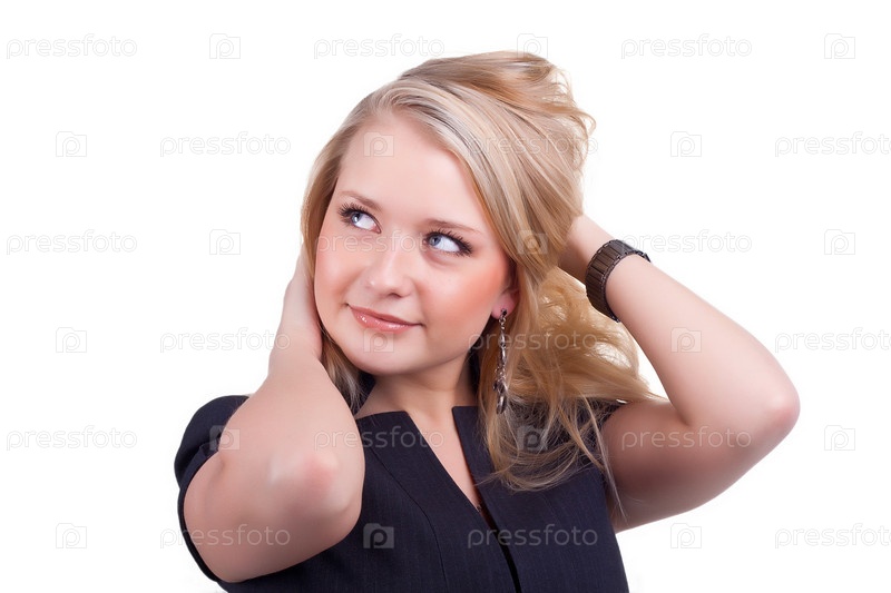 Молодая женщина в студии белом фоне