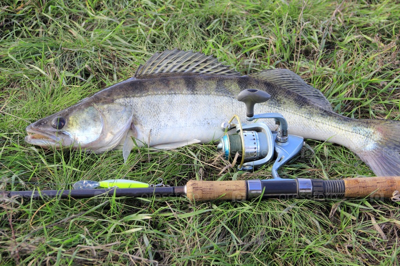 Рыба и удочка на траве