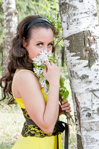 Портрет молодой женщины у березы
