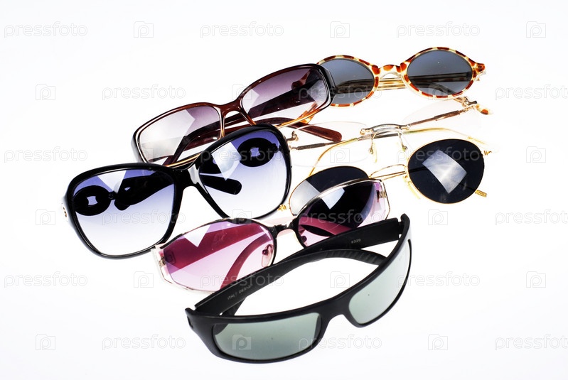 Набор различных очков на белом фоне