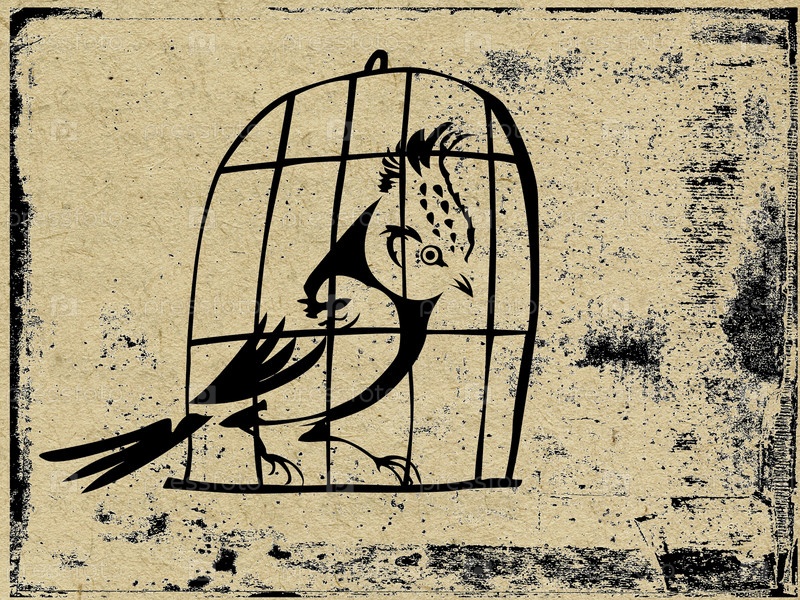 Птица в клетке на фоне гранж, векторные иллюстрации