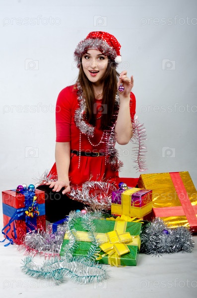 Девушка в новогодней шапочке с подарком