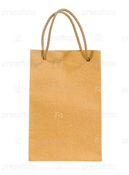 Бежевый пакет, изолированный на белом (путь вырезания)
