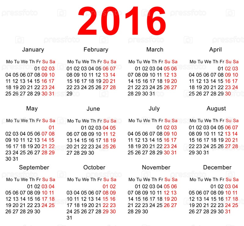 Шаблон календаря 2016 года