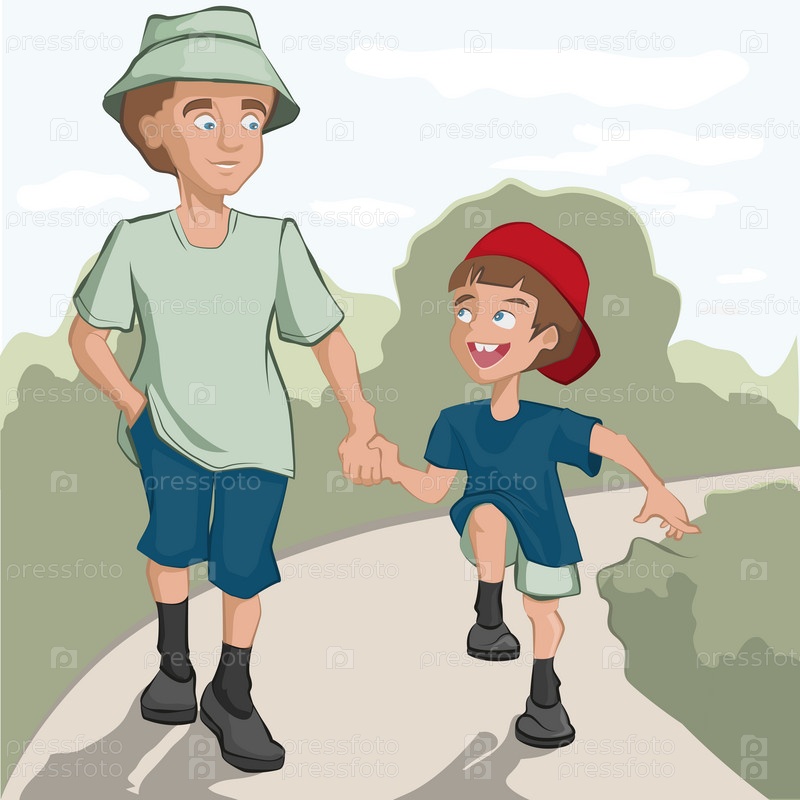 Отец и сын идут по дороге