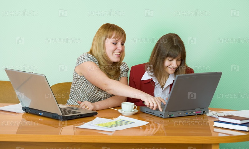 Молодые девушки работают, сидя за столом