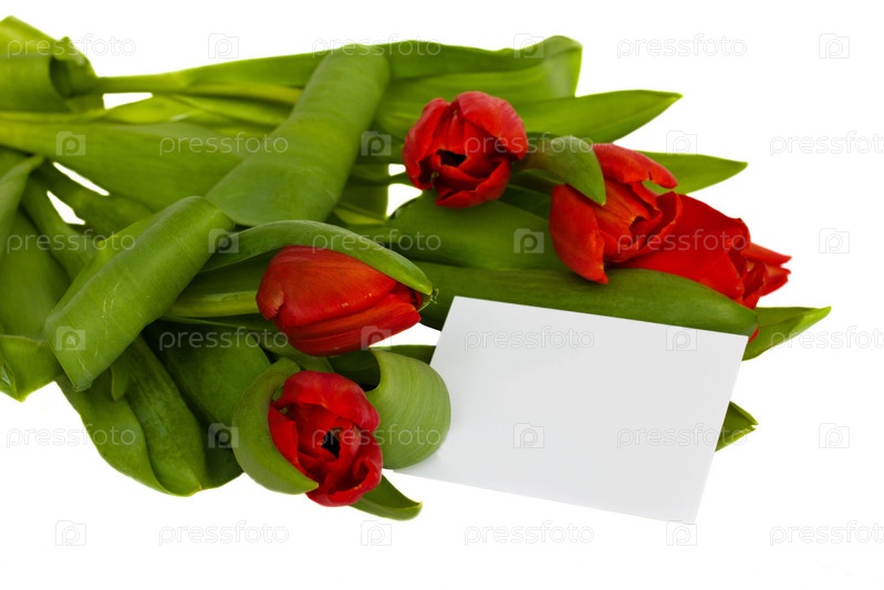 Красные тюльпаны на белом фоне
