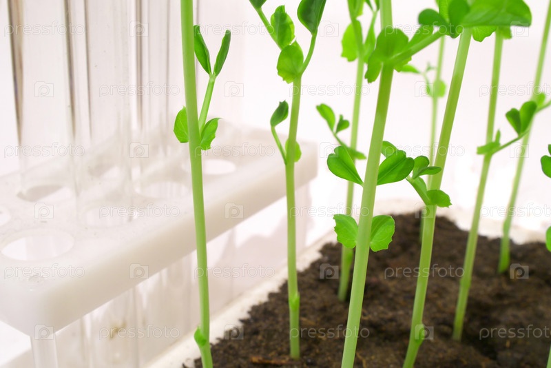 Молодые побеги гороха на белом фоне