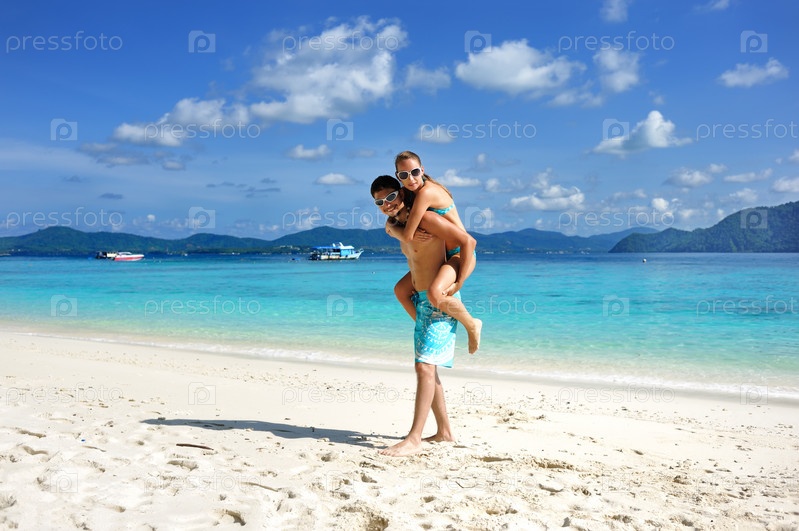 Влюбленная пара на тропическом пляже