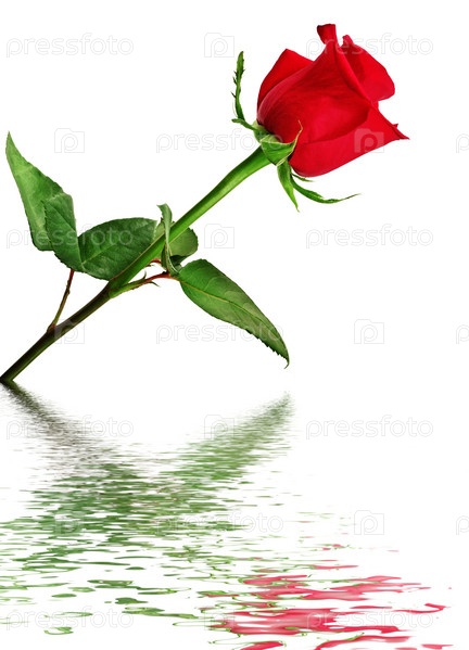 Красная роза у воды на белом фоне
