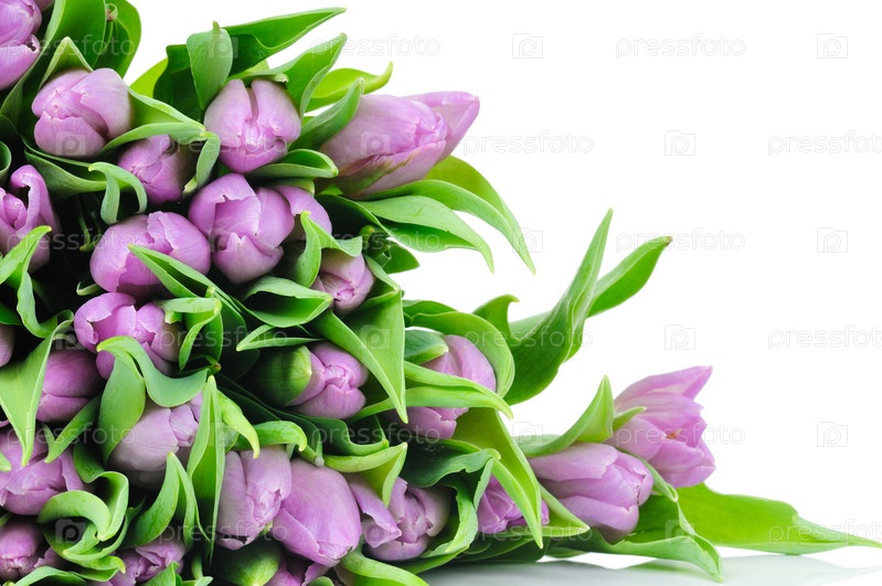 Фиолетовые тюльпаны изолированы на белом фоне