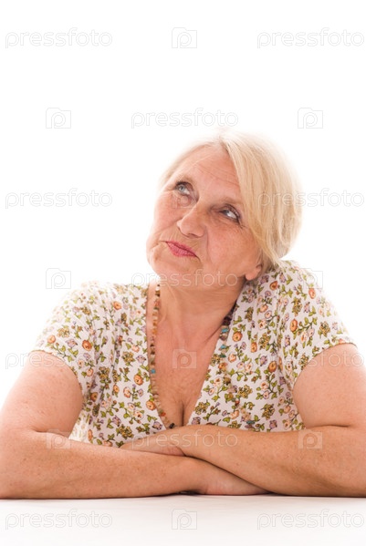 Красивая пожилая женщина на белом фоне