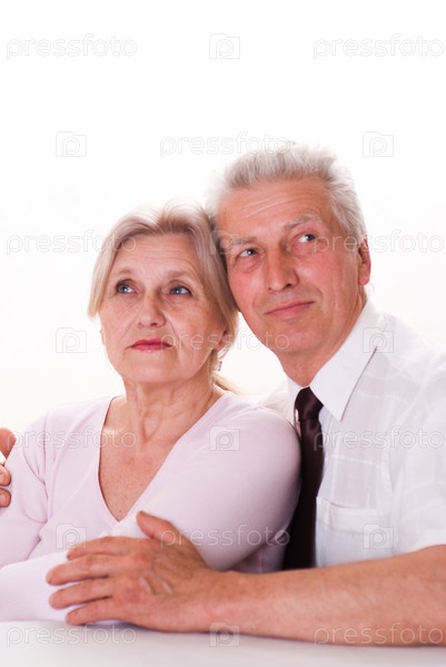 Счастливая Пожилая пара, на белом фоне