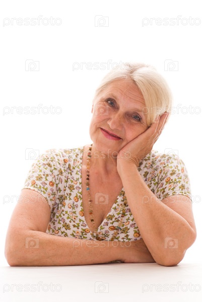 Красивая пожилая женщина на белом фоне