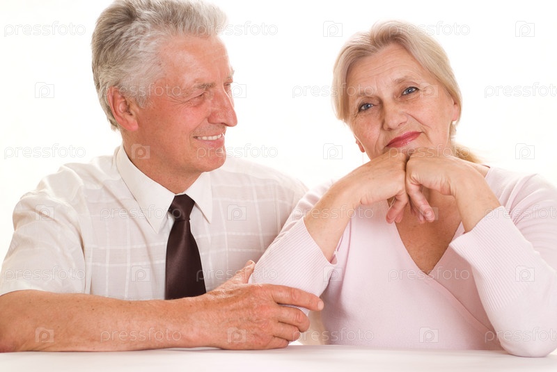 Счастливая Пожилая пара, на белом фоне