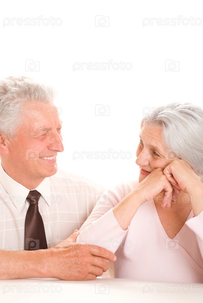 Счастливая Пожилая пара, на белом фоне