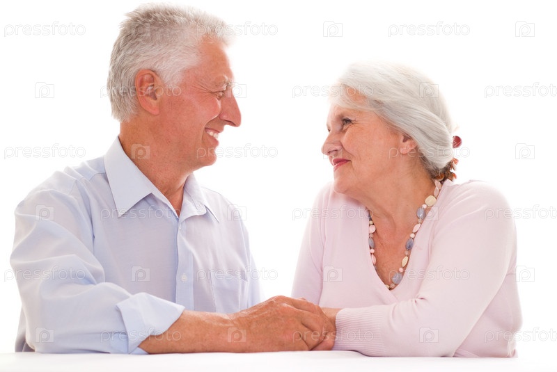 Счастливая Пожилая пара, на белом фоне