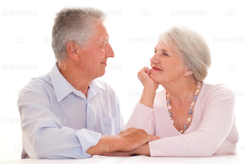 Счастливая Пожилая пара, на белом фоне