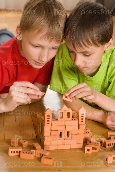 Два брата строят игрушечный замок