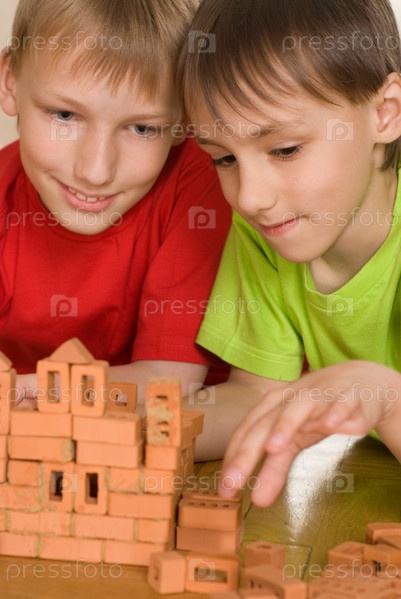 Два брата строят игрушечный замок