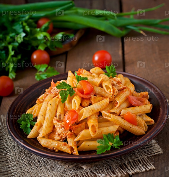 Паста с мясом и помидорами