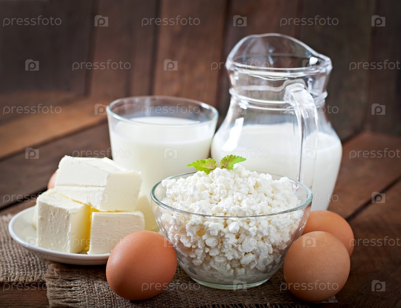 Творог, молоко, яйца и сливочное масло
