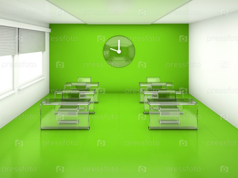 Пустой фантастический интерьер классной комнаты с партами