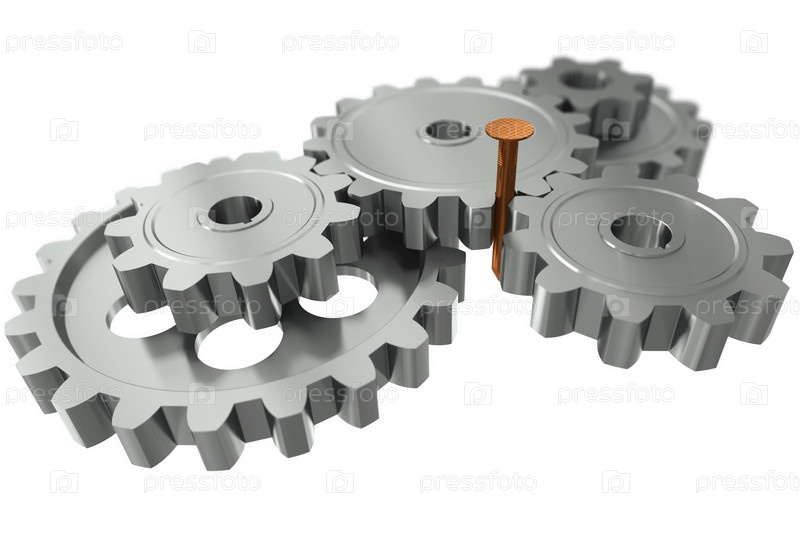 Гвоздь между шестеренками - символ препятствия в бизнесе