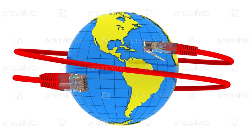 красный Интернет кабель обернутый вокруг земли