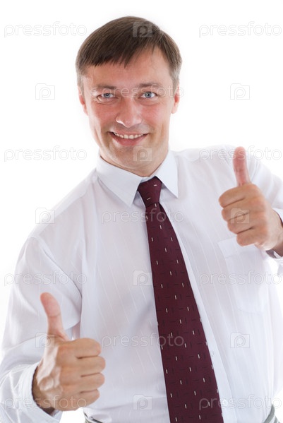 Улыбающийся бизнесмен показывает жест "ок"