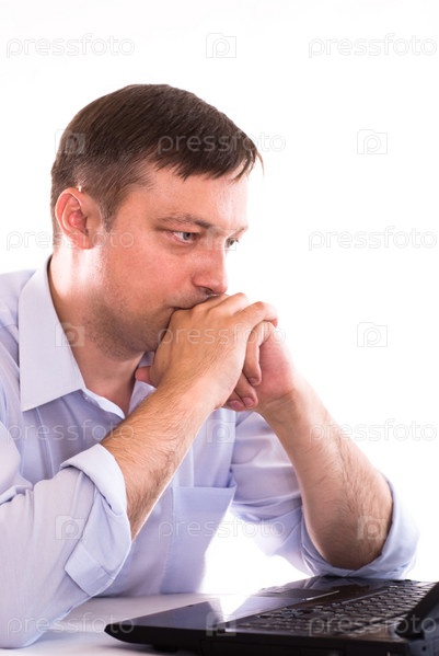 Озадаченный бизнесмен перед ноутбуком