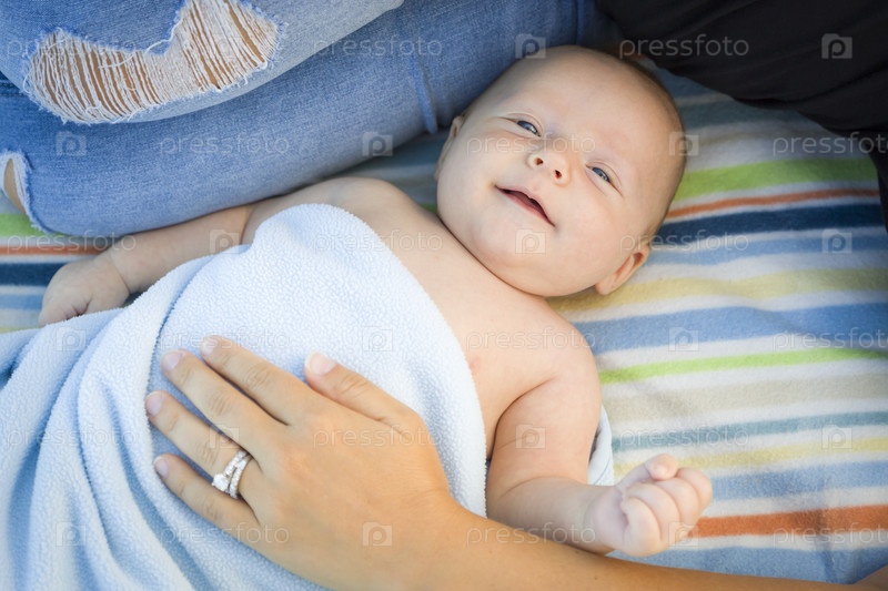 Маленький мальчик, завернутые в его одеяло, отдыхая с мама