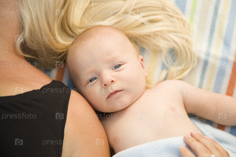 Милый ребенок мальчик, с его мама на одеяло