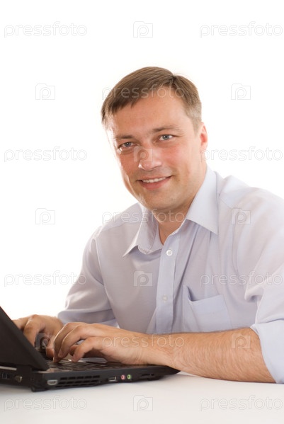 Бизнесмен работает на ноутбуке