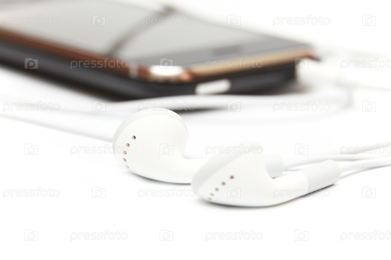 Белые наушники и телефон