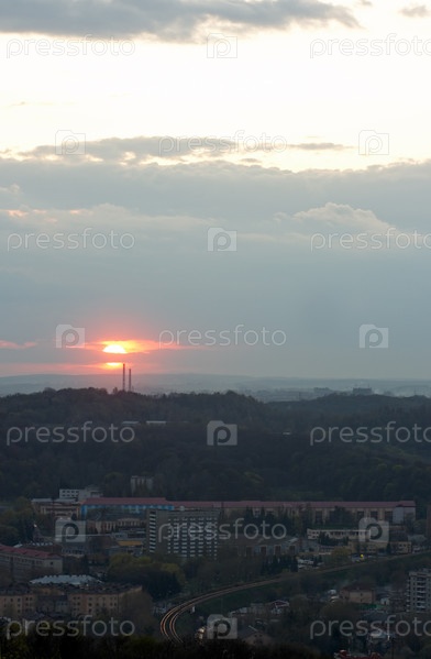 Вид на город Львов закат (с железной дороги)